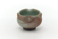 This katakuchi (yuzamashi; water cooler) features small side-wings and a lip that's shaped like a heart. It's made from a brown clay and decorated with an abstract grey glaze.