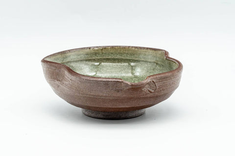 This very small katakuchi (yuzamashi; water cooler) is made from brown clay and features a beautiful crazed inner celadon glaze