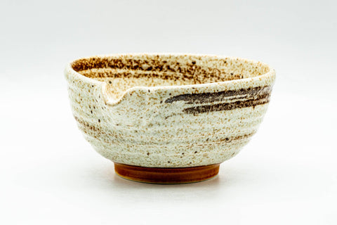 This large katakuchi (spouted bowl) features a speckled beige glaze. It's perfect for whisking and serving larger portions of matcha.