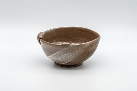 This brown katakuchi / yuzamashi (water cooler) features a white hakeme (brush stroke) decoration and is perfect for adjusting water temperature when brewing high quality Japanese tea.