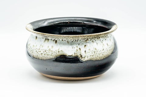 This kensui (waste water bowl) features a beautiful black and white hare's fur drip-glaze.