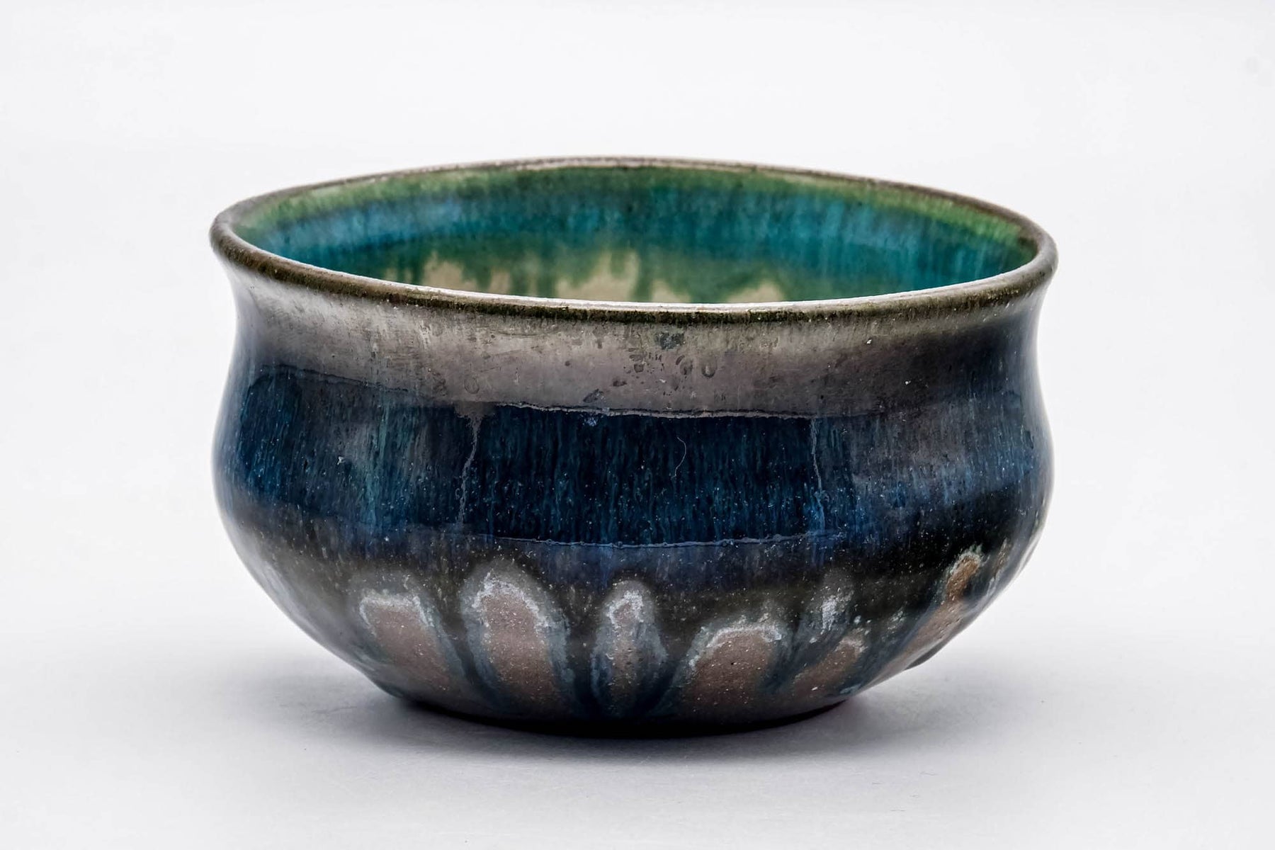 This kensui (waste water bowl) features a stunning and dramatic blue drip-glaze.Dimensions:13.3cm (5.2in) - width7cm (2.8in) - height500ml - capacityCondition: Very goodThis vintage Japanese item ships from Thailand