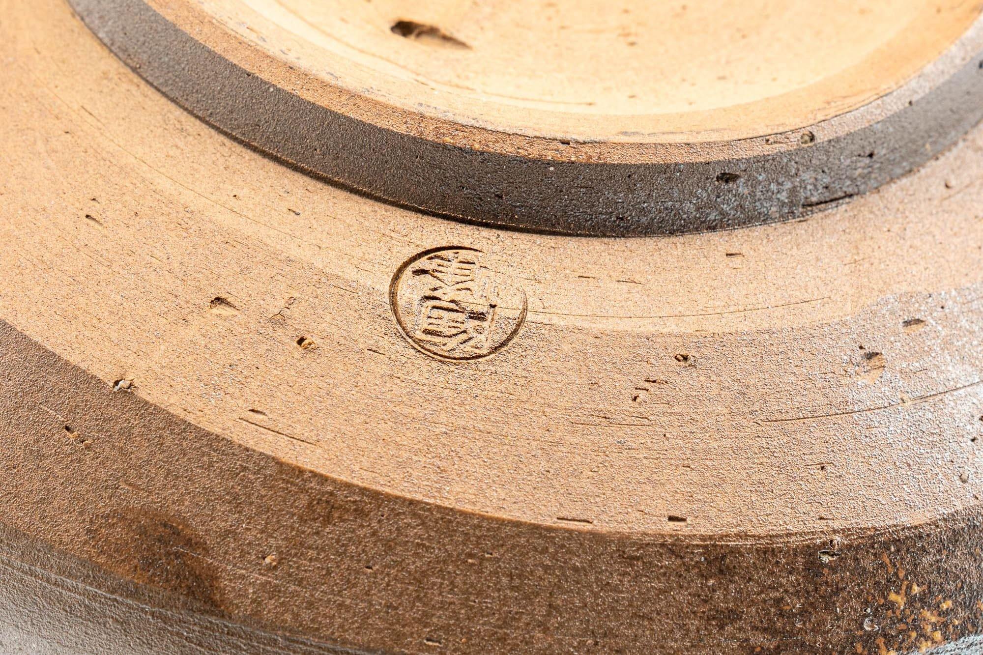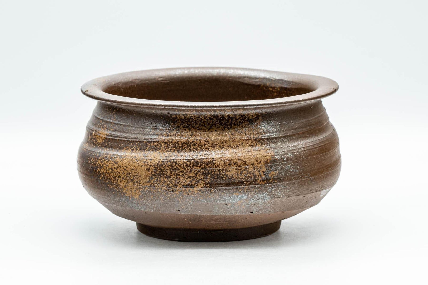 This kensui (waste water bowl) features a brown glaze and a thumb indent.