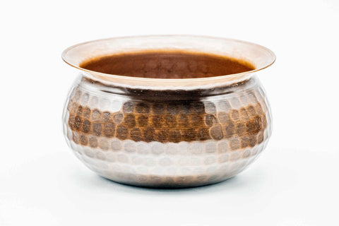 This kensui (waste water bowl for tea ceremony) is made entirely from copper, hammered with scales that perfectly surround its exterior.