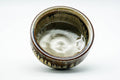 This kensui (waste water bowl for tea ceremony) features a spiraling clay body and a dramatic beige-brown drip-glaze.
