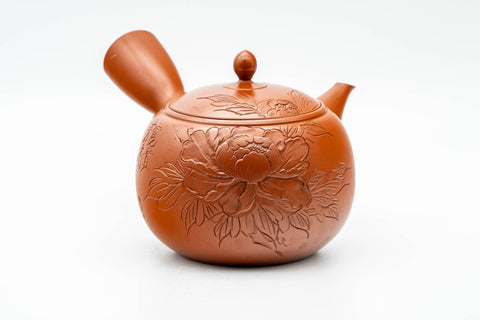 Japanese Kyusu - 北龍 Hokuryu - Camellia Floral Engraved Tokoname-yaki Debeso Teapot - 450ml