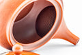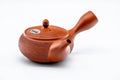 Shunju KilnThis delicately crafted Tokoname-yaki kyusu (teapot) is made from the iconic Tokoname red shudei (朱泥) clay. The body is decorated with a detailed pine bark textured that contrasts with the smooth spout and handle. Made using a small wheel, this texturing technique is called matsugawa (松皮 - pine bark) in Japanese.