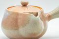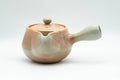 This Hagi-yaki kyusu (teapot) is made like a houhin, meaning that it has a wide, triangular open spout which allows for fast pouring, a simple ceramic do-ake filter which lends no metallic taste to the tea, and a wide opening which allows for easy viewing of the tea leaves and easy cleaning.