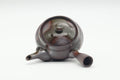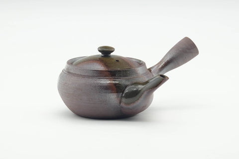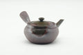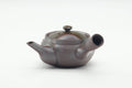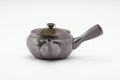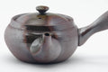 This Banko-yaki kyusu (teapot) is made from purple clay and decorated with an abstract ash green glaze. Its mesh strainer is perfect for brewing even the most deeply-steamed fukamushi senchas.