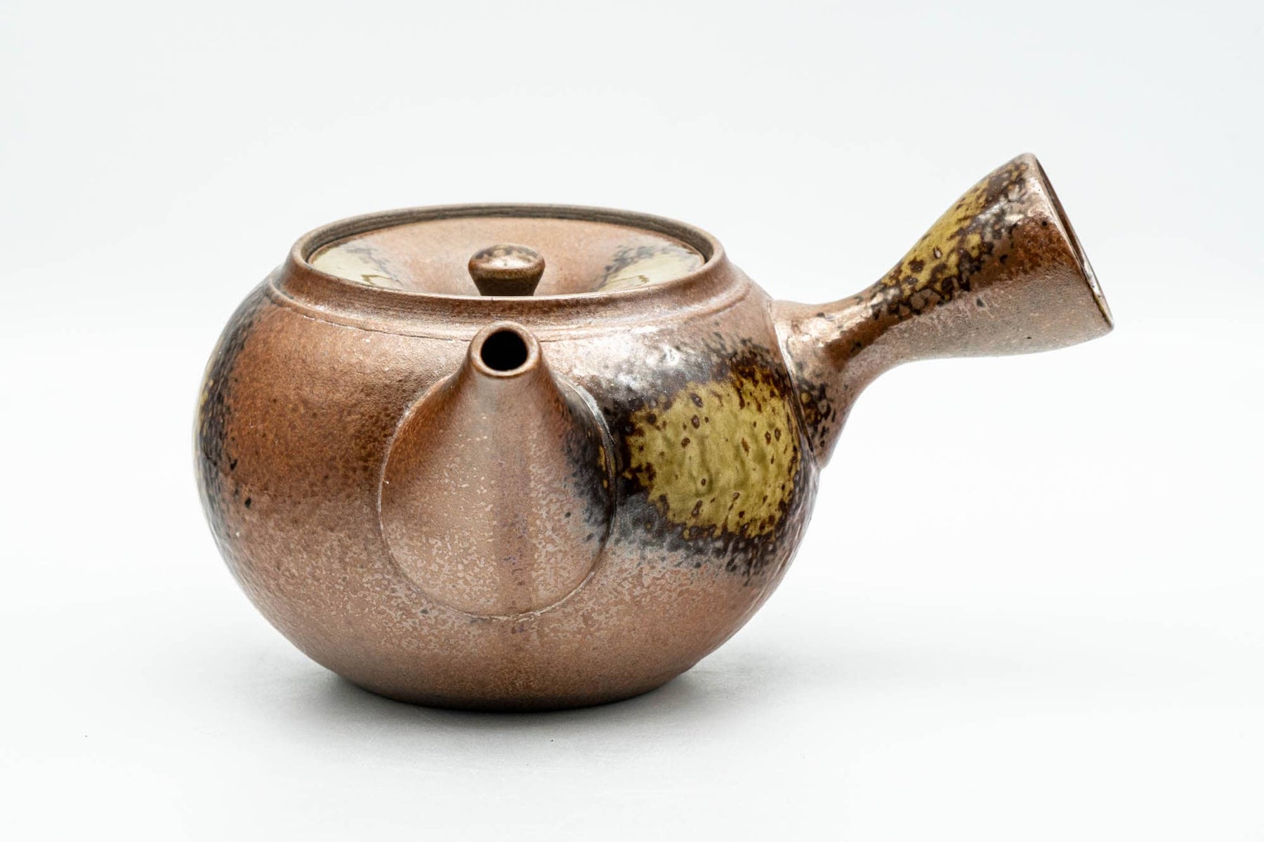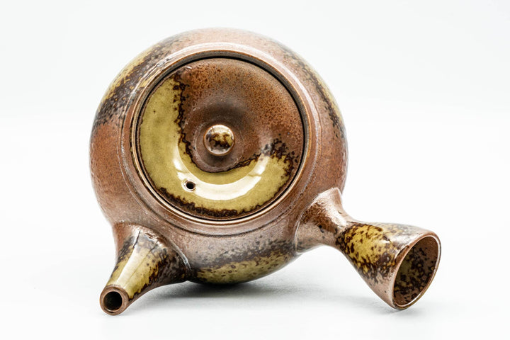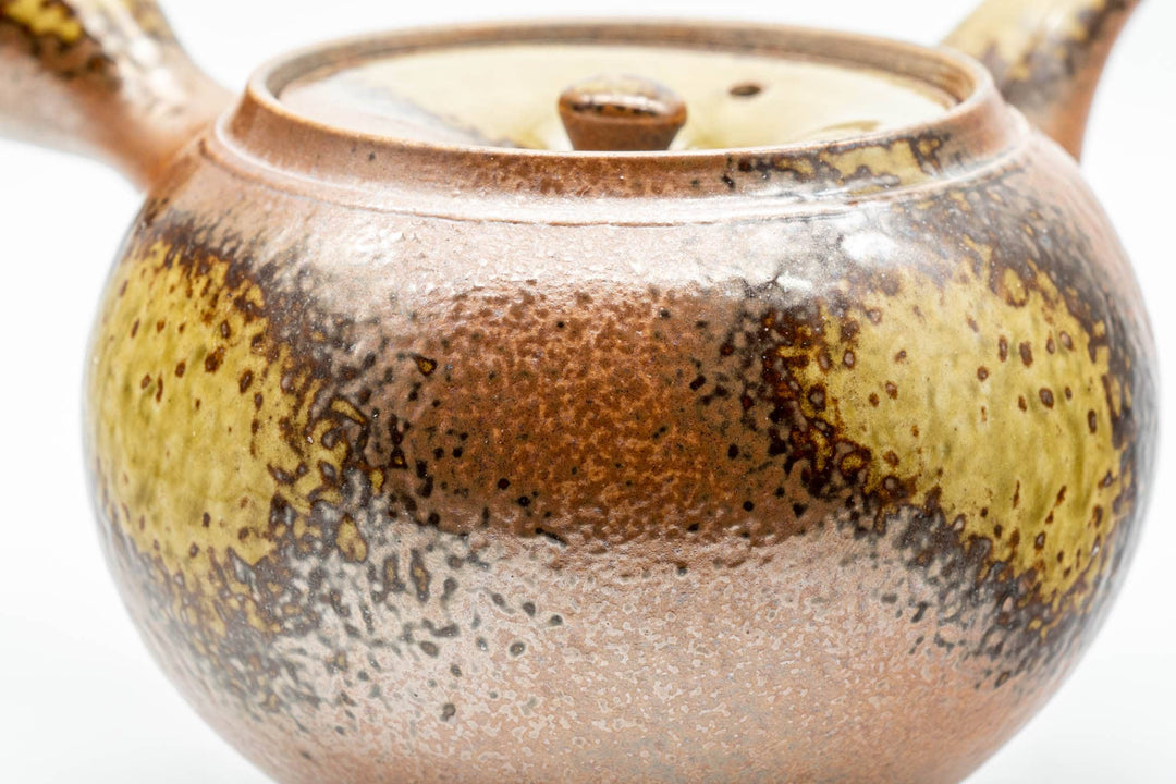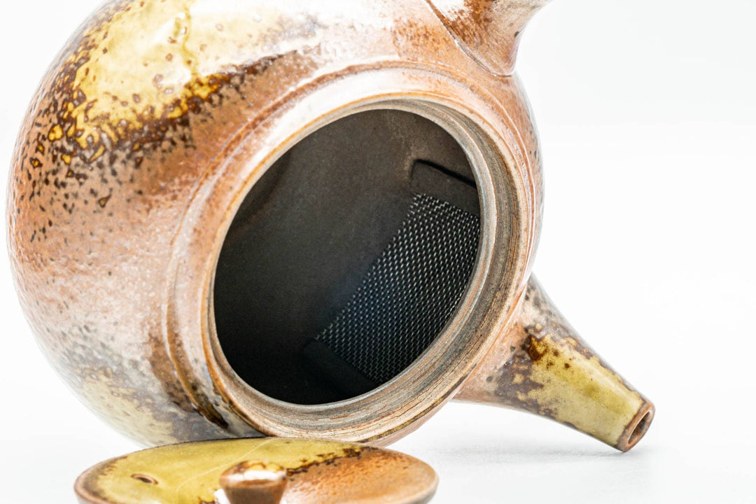 This Shigaraki-yaki kyusu (teapot) features an aesthetically well-balanced ash green glaze. Its mesh strainer is perfect for brewing even the most deeply-steamed fukamushi senchas.