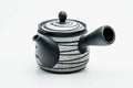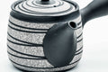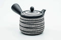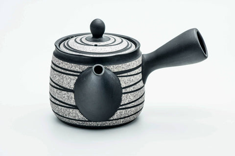 This Tokoname-yaki kyusu (teapot) features a textured exterior pattern with wavy horizontal stripes. Its obi-ami 360 degree mesh strainer wraps around the inside of the pot, and is perfect for brewing even the most deeply-steamed fukamushi senchas.