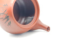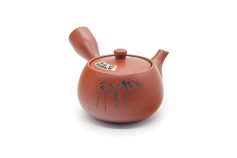 This Tokoname-yaki kyusu (teapot) is made from unglazed red shudei clay and engraved with bamboo patterns.Its mesh strainer is perfect for brewing even the most deeply-steamed fukamushi senchas.