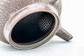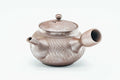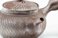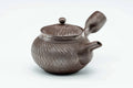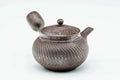 This small Banko-yaki kyusu (teapot) is decorated with a tochiri pattern: fine diagonal slashes made with a razor blade around its exterior. Its built-in ceramic debeso filter is perfect for naturally straining tea.