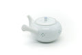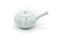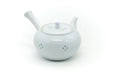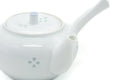 This sleek Arita-yaki kyusu (teapot) is beautifully made from white porcelain and decorated with floral inlay patterns. Its built-in ceramic debeso filter is perfect for naturally straining tea.