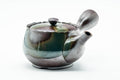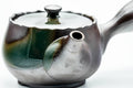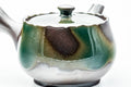 This Banko-yaki kyusu (teapot) features classic purple clay decorated with an ash green patch glaze. Its mesh strainer is perfect for brewing even the most deeply-steamed fukamushi senchas.