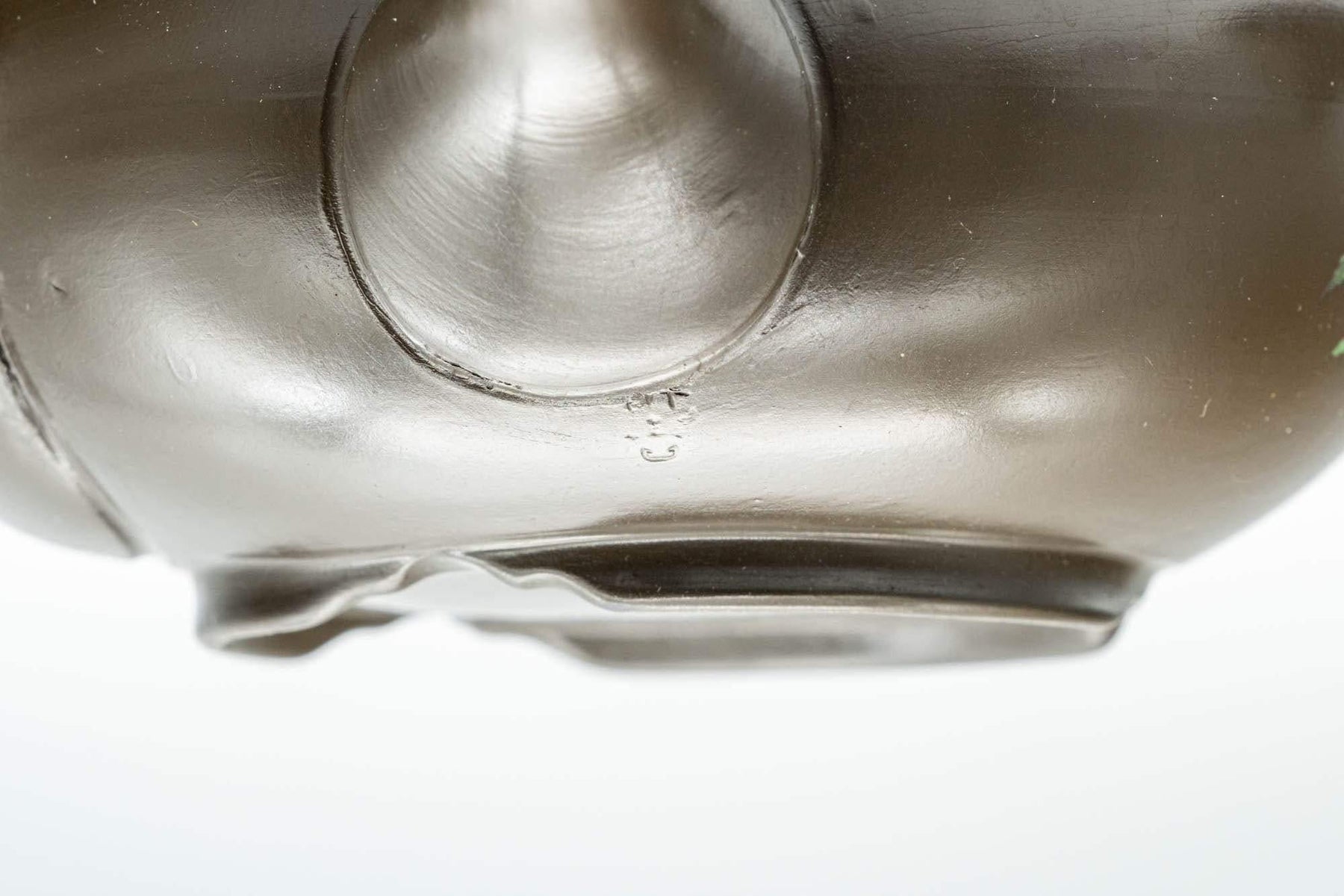 This Tokoname-yaki kyusu (teapot) features a grey glazed decorated with green kanji and motifs of villagers.
