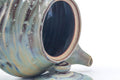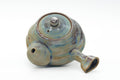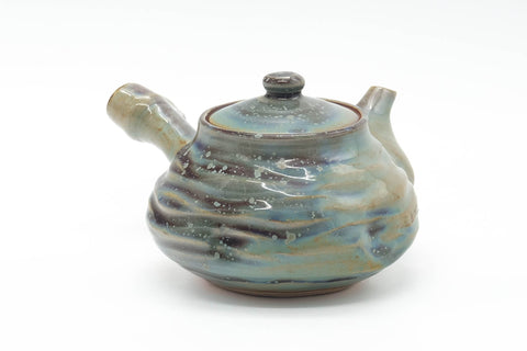 This wabi sabi kyusu (teapot) is just about as abstract as it gets, featuring a spiraling and indented body with a green and purple speckled glaze.