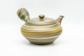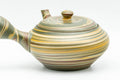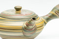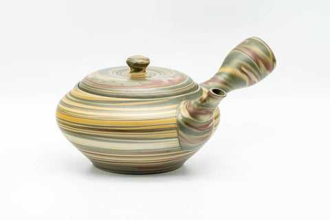 This Tokoname-yaki kyusu (teapot) features a beautiful green, red, and yellow marbled clay and a built-in ceramic debeso filter.