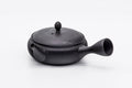 GyokkoThis exquisitely crafted Tokoname-yaki kyusu (teapot) is made from Tokoname kokudei (黒泥) clay, which has the same properties as the iconic red shudei (朱泥) but is fired in reduction producing a deep black. The kyusu is decorated with an intricate web of fine mogake (藻掛 - seaweed wrapping) patterns. As the name suggests, this traditional Tokoname technique that dates back to the Edo period is achieved by wrapping each piece with amamo seaweed before firing. In the kiln, the seaweed burns off, leaving its carbonised silhouette draped across pot.