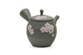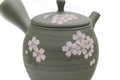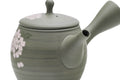 GyokkoThis expertly crafted tall Tokoname-yaki kyusu (teapot) is made from green ryokudei (緑泥) Tokoname clay. In addition to general use, its tall shape makes it especially suited for brewing tightly rolled oolong and black teas which tend to expand more during steeping. The back and lid of the kyusu are decorated with elegant pink sakura (桜 - cherry blossoms) with green leaves. Unlike most Tokoname kyusu, this pot's lid is of the inset style, similar to some Chinese yixing teapots.