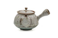 This uniquely crafted Tokoname-yaki kyusu (teapot) is made from one of Junzō's signature clay's, a rough sandy beige stoneware, which is then thrown in to a delightful rounded-trapezoidal shape with a flaring lip. The pot is coated in a flowing, translucent, white ash glaze which turns a pale blue as it pools.The teapot's built-in ceramic sasame filter is perfect for naturally straining tea, with a wide shape for faster pouring and less clogging.