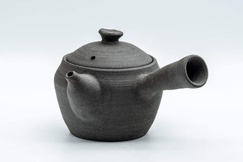 This kyusu (teapot) features matte black unglazed stoneware.