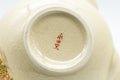 This nasu-gata Kutani-yaki kyusu (teapot) features a crazed cream glaze and is decorated with golden red and white ume (plum blossoms). Made by Nagata Kiln (永田窯).