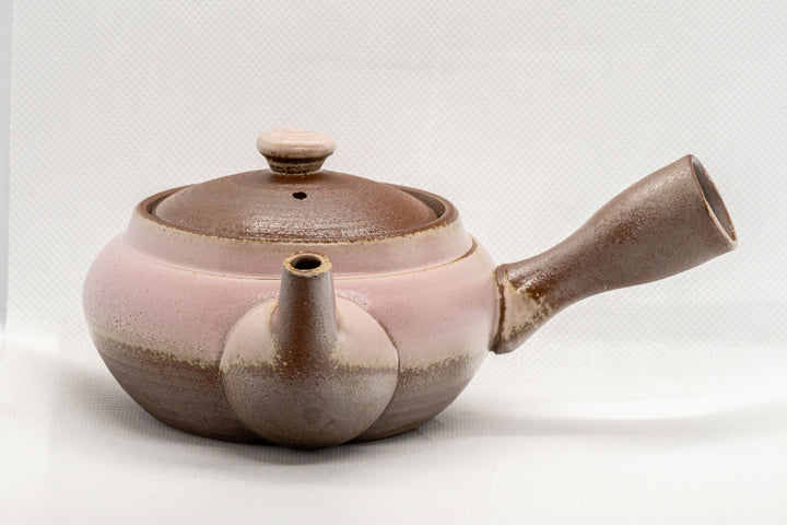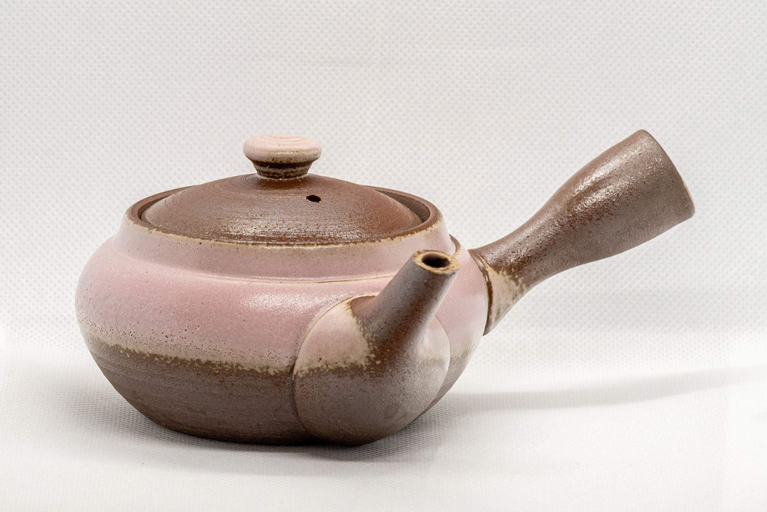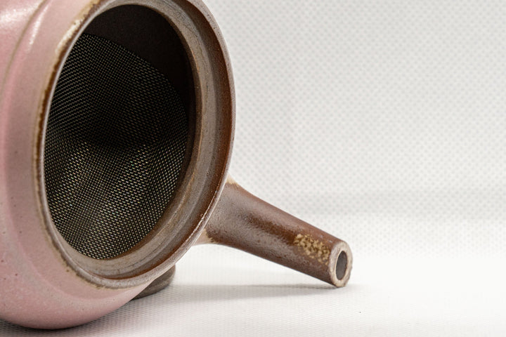 This Banko-yaki kyusu (teapot) comes with a fine mesh strainer and is decorated with pink ash glaze.