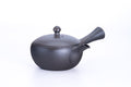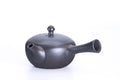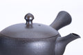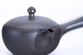 This exquisitely crafted Tokoname-yaki kyusu (teapot) is made from a dark grey clay with a super thin layer of an original glaze developed by Tomohiro that gives the pot a unique black-brown metallic sheen.