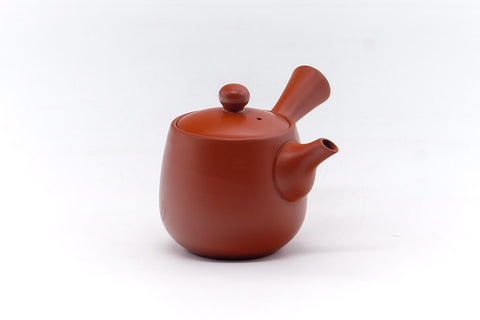 This small Tokoname-yaki kyusu (teapot) is made from unglazed red shudei clay. Its built-in ceramic debeso filter is perfect for naturally straining tea.