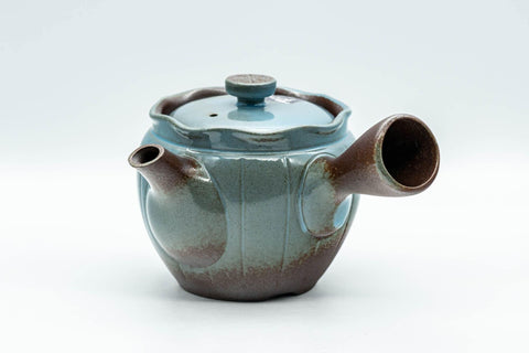 This mould-made Banko-yaki kyusu (teapot) features a teal blue glaze.