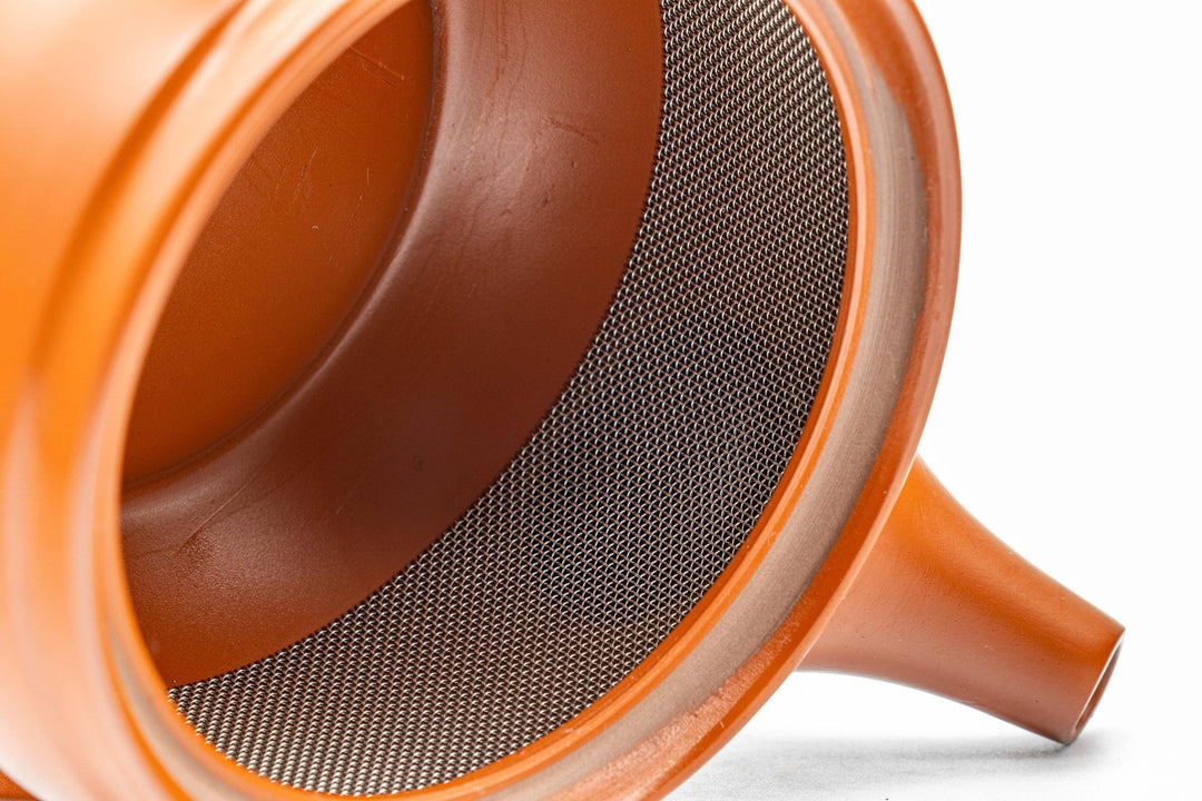 This sleek Tokoname-yaki kyusu (teapot) comes in a classic shape and sports a 'obi-ami' fine steel mesh filter going 270 degrees around the inside of the teapot.