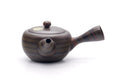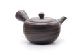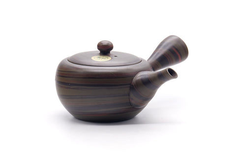 This Tokoname-yaki kyusu (teapot) is made with a striking green, red, and black marbled clay. The marbled effect is produced through the nerikomi technique, which involves layering different coloured clay. Its built-in ceramic debeso filter is perfect for naturally straining tea. Made by Unzen Kiln (雲仙窯).