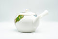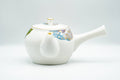 This Arita-yaki porcelain kyusu (teapot) is decorated with a multi-coloured wave across its body and lid. Its built-in ceramic debeso filter is perfect for naturally straining tea.