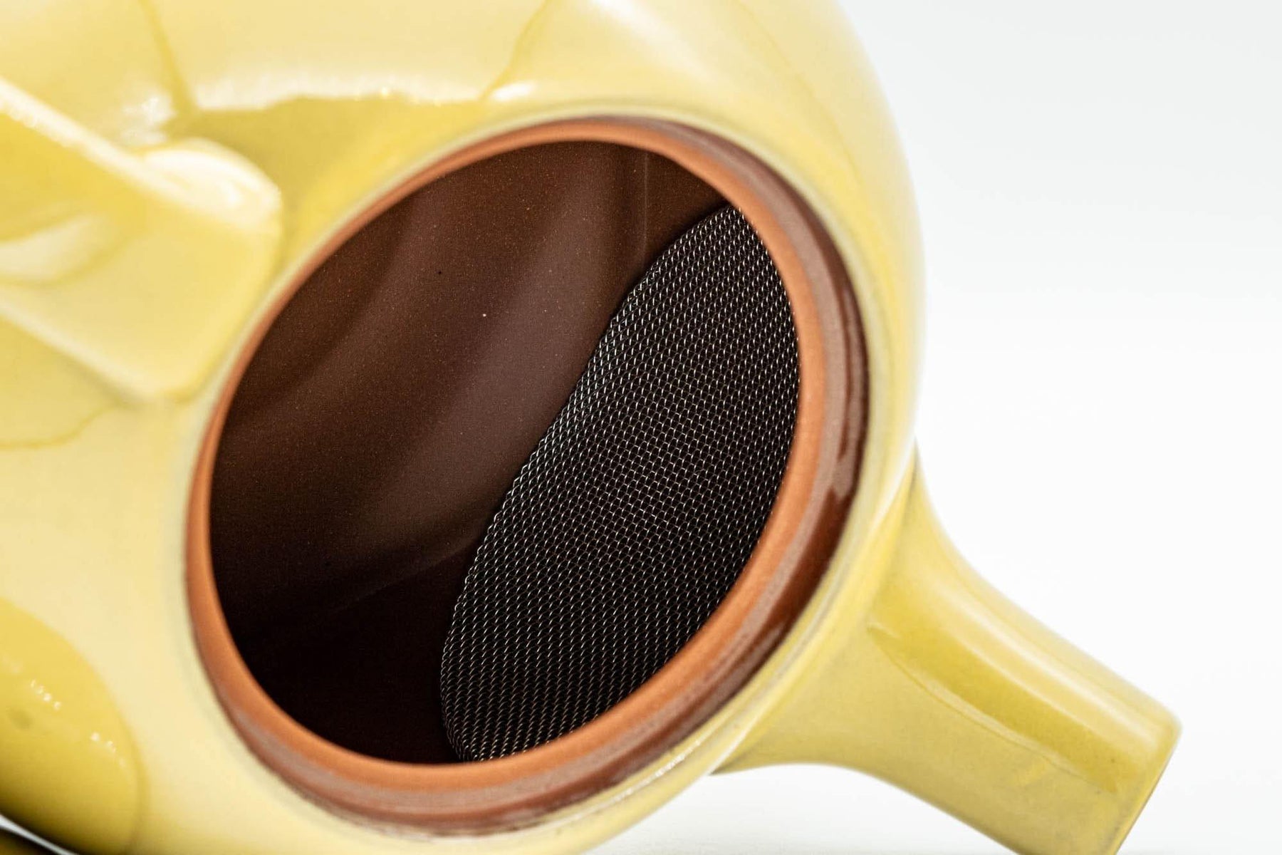 This ushirode (rear-handle) Japanese kyusu (teapot) has a very smooth yellow body. Its fine mesh strainer allows you to brew the most deeply-steamed fukamushi senchas without clogging up the spout.