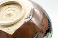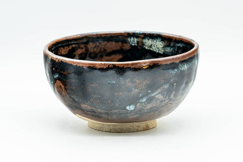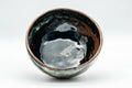 This wabi-sabi chawan (matcha bowl) features an intricate black and brown, with a subtle touch of white, glaze. Made by 久.