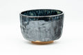 This wabi-sabi chawan (matcha bowl) features a jet black and blue hare's fur drip-glaze.