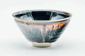 The term 'tenmoku' can refer to two things: the shape of a bowl, i.e. conical with a finger groove and flare at the lip; and a dark high-iron glaze that can produces various beautiful effects under the right firing conditions.