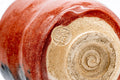 This tsutsu-gata Aka-raku winter chawan (matcha bowl) features a bright red glaze with patches of black. Its tall cylindrical shape helps keep the tea warm during the colder months. The foot is left unglazed showing off the true colour of the clay.