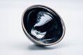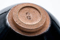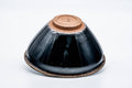 This tenmoku-gata Kyo-yaki chawan (matcha bowl) features a black glaze with a subtle hares fur, nogime drip effect on the front.