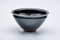 The term 'tenmoku' (天目) can refer to two things: the shape of a bowl, i.e. conical with a finger groove and flare at the lip; and a dark high-iron glaze that can produce various beautiful effects under the right firing conditions. Both of these originated in Jian ware from Fujian during the Song dynasty (960-1279) in China, where the dark colour of the glaze was praised for the way it contrasts nicely with the froth of whisked tea.