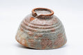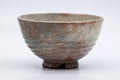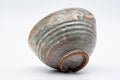 This beautiful Hagi-yaki chawan (matcha bowl) has a subtle spiraled shape with gentle rokurome (ろくろ目 - potters' wheel marks) which shows the flow of the potter's fingers as they shaped the piece on the wheel, and also has a beautiful mottled glaze, with shades of white, grey, red, and beige.