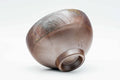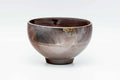 This sugi-nari Bizen-yaki chawan (matcha bowl) features an unglazed finish, typical of Bizen ware, that shows off the dramatic marks left by the heat and fire during the kiln firing process. This texture is accented by spots of natural glaze formed by ash falling on the bowl during firing. This spotty pattern is called 'goma' after its resemblance to sesame seeds.