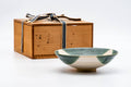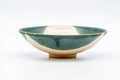 This hira summer chawan (matcha bowl) features a wonderful green glaze symmetry. It's especially shallow and best for koicha.
