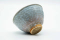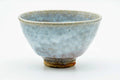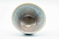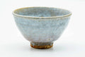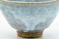 This weathered wan-nari Hagi-yaki chawan (matcha bowl) features a brilliant white-blue tint drip-glaze.