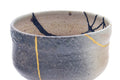 Kintsugi (金継ぎ - gold joinery) is a ceramic repair technique in which chips, cracks, and broken pieces are repaired with urushi lacquer, which is either mixed or dusted with precious metal powder, typically gold or silver. Rather than hiding the damage, the use of precious metals highlights the flaws, which tells the story of the item’s wear and repair over time, and ties into the Buddhist concept of mushin (無心 - no mind) which embraces such imperfection.