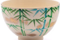 This wan-nari Kyo-yaki chawan (matcha bowl) is painted with a terrific bamboo motif.