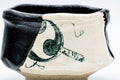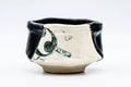 Oribe-yaki (織部焼) is a type of Japanese pottery known for its free flowing glazes and asymmetrical, hand-formed shapes. Dating in the late 16th century, Oribe ware takes its name from legendary tea master Furuta Oribe (古田 織部) who is believed to have played a large part in its development. Oribe wares are decorated with abstract designs and splashes of free-flowing vibrant green or deep black glaze. With these distorted shapes and novel decorations, Oribe-yaki exudes a charm that matches Furuta Oribe’s philosophy of hyouge (へうげ) or playfulness. One of the most popular styles of Oribe ware is Ao-Oribe or Green Oribe, which is decorated with geometric patterns painted with an iron glaze and then partially covered in a vibrant green copper-sulfate glaze which contrasts against the light background.