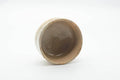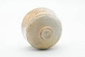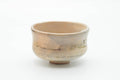 This dojimari-gata chawan (matcha bowl) features a beige earthy glaze glaze decorated with an abstract speckled pattern.