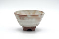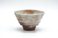 This wonderful Hagi-yaki chawan (matcha bowl) features a spiraling body glazed with beige and pink gohonte spots.